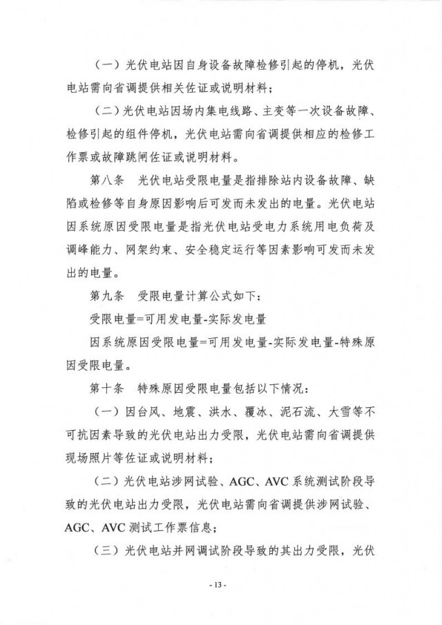 (一)光伏電站因自身設(shè)備故障檢修引起的停機(jī),光伏電站需向省調(diào)提供相關(guān)佐證或說明材料;