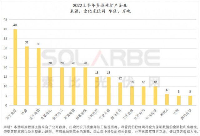 經(jīng)公開(kāi)信息統(tǒng)計(jì),東方希望、清電能源、寶豐集團(tuán)、天合光能、中來(lái)股份、上機(jī)數(shù)控六家企業(yè)上半年共計(jì)擴(kuò)產(chǎn)189萬(wàn)噸工業(yè)硅,且工業(yè)硅擴(kuò)產(chǎn)規(guī)模均超出配套多晶硅產(chǎn)量。