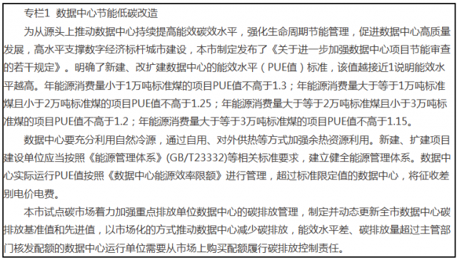 第三章 全面推進綠色低碳循環(huán)發(fā)展將應對氣候變化和節(jié)能作為推進高質(zhì)量發(fā)展的重要途徑,全面落實首都城市戰(zhàn)略定位,深入貫徹減量發(fā)展、綠色發(fā)展理念,統(tǒng)籌推進產(chǎn)業(yè)結(jié)構(gòu)、能源結(jié)構(gòu)、城市功能綠色低碳轉(zhuǎn)型,加快釋放綠色發(fā)展新動能,有力促進京津冀區(qū)域綠色發(fā)展。一、深度推動產(chǎn)業(yè)結(jié)構(gòu)優(yōu)化調(diào)整(一)系統(tǒng)推進產(chǎn)業(yè)結(jié)構(gòu)升級積極發(fā)展科技含量高、資源消耗低、碳排放少的高精尖產(chǎn)業(yè),加快高耗能高排放生產(chǎn)制造企業(yè)及生產(chǎn)環(huán)節(jié)的退出及高耗能設備的淘汰,有序引導不符合首都功能定位的一般制造業(yè)轉(zhuǎn)移退出,嚴控、壓減在京石化生產(chǎn)規(guī)模和水泥產(chǎn)能。修訂并嚴格執(zhí)行新增產(chǎn)業(yè)禁止和限制目錄,按照先進節(jié)能低碳標準設計準入條件,堅決控制高耗能、高排放項目新建和改擴建。強化環(huán)評、能評和碳評源頭協(xié)同控制,嚴格控制新建項目能耗和碳排放水平。以綠色技術創(chuàng)新引領高精尖產(chǎn)業(yè)發(fā)展,持續(xù)推進綠色制造體系建設,努力培育新能源、新材料、新能源汽車、燃料電池、氫能等產(chǎn)業(yè)新增長點。建設新能源產(chǎn)業(yè)集聚中心和產(chǎn)業(yè)化示范基地,提升產(chǎn)業(yè)鏈、供應鏈現(xiàn)代化水平,積極創(chuàng)建國家綠色產(chǎn)業(yè)基地,打造具有國際競爭力的綠色產(chǎn)業(yè)集群。培育發(fā)展綠色智慧技術服務新業(yè)態(tài),為綠色低碳發(fā)展提供技術支持。到2025年,基本形成具有首都特點的現(xiàn)代化綠色經(jīng)濟體系。(三)持續(xù)推動產(chǎn)業(yè)綠色化改造對標國際國內(nèi)先進能效和碳排放水平,實施一批節(jié)能低碳技術改造項目。開展重點行業(yè)綠色化改造,推動燃氣電廠、燃氣鍋爐、工業(yè)窯爐、污水處理廠、數(shù)據(jù)中心等余熱余壓回收利用,加快實施道路照明節(jié)能改造,提升新建數(shù)據(jù)中心能效標準,持續(xù)開展數(shù)據(jù)中心節(jié)能降碳改造。大力發(fā)展循環(huán)經(jīng)濟,全面推行清潔生產(chǎn),推動資源綜合利用。開展市級以上園區(qū)綠色低碳循環(huán)改造,強化園區(qū)資源梯級利用和系統(tǒng)優(yōu)化?!笆奈濉睍r期制造業(yè)碳排放基本實現(xiàn)增減平衡,單位工業(yè)增加值能耗和二氧化碳排放分別下降12%以上和20%左右。二、深入推進能源結(jié)構(gòu)低碳轉(zhuǎn)型大力推進以電代煤,有序推進以電代油、以電代氣,嚴控化石能源消費增長,確保能源活動碳排放總量不超過“十三五”總體水平。加快削減工業(yè)用煤,現(xiàn)有燃煤機組作為應急備用機組,有序推進山區(qū)村莊煤改清潔能源,基本實現(xiàn)淺山區(qū)村莊“無煤化”,非應急情況下基本不再使用煤炭,煤炭消費總量控制在100萬噸以內(nèi)。推進油品消費總量穩(wěn)中有降,加快機動車電氣化替代,控制航空煤油過快增長??刂铺烊粴饫靡?guī)模,天然氣消費總量控制在200億立方米左右。因地制宜發(fā)展本市可再生能源,大力發(fā)展光伏、地熱,適度發(fā)展風電和垃圾焚燒發(fā)電,促進氫能示范應用。推進分布式發(fā)電就地并網(wǎng)使用,積極發(fā)展“新能源+儲能”“源網(wǎng)荷儲”和多能互補。按照“宜建盡建、應用盡用”的原則,優(yōu)先使用可再生能源保障供給,完善可再生能源利用的基礎設施和產(chǎn)業(yè)配套,推動可再生能源、新技術與城市融合發(fā)展。2025年全市可再生能源比重達到14.4%以上。大力發(fā)展地熱及熱泵、太陽能、儲能蓄熱等清潔供熱模式,2025年全市可再生能源供熱面積占比達到10%以上。(三)推動京津冀區(qū)域能源低碳轉(zhuǎn)型加強京津冀能源一體化發(fā)展,強化低碳能源開發(fā)合作。建設跨區(qū)域的電力、天然氣、油品等能源輸送通道,推進區(qū)域內(nèi)能源基礎設施互聯(lián)互通。共同開發(fā)區(qū)域內(nèi)風能和太陽能等資源,優(yōu)先安排可再生能源、清潔能源和高效電源上網(wǎng)。高標準建設張家口可再生能源示范區(qū)。促進北京與河北新能源基地合作共建,加快西北、南部方向綠色電力輸送通道和配電調(diào)峰儲能設施建設,切實提高本市綠色電力消納能力,2025年全市外調(diào)綠色電力力爭達到300億千瓦時。有序布局氫能產(chǎn)業(yè)發(fā)展,以科技創(chuàng)新為核心,強化政策引領和產(chǎn)業(yè)培育,驅(qū)動京津冀氫能產(chǎn)業(yè)協(xié)同發(fā)展,合力構(gòu)建氫能與燃料電池全產(chǎn)業(yè)鏈。持續(xù)優(yōu)化城市功能布局,堅定不移疏解非首都功能,構(gòu)建推動減量發(fā)展的體制機制,合理控制開發(fā)強度,將綠色低碳理念納入城市規(guī)劃建設整體布局。以城市更新為契機,推進城市建設綠色升級,在城市更新、新城建設中充分考慮綠色低碳循環(huán)發(fā)展和適應氣候變化要求,推動交通、能源、水處理等基礎設施升級改造,加強新能源推廣利用,構(gòu)建堅強韌性、低碳智慧的城市基礎設施。基于不同區(qū)域功能定位,綜合考慮經(jīng)濟社會發(fā)展水平、資源稟賦、節(jié)能潛力等因素,實施區(qū)域差異化節(jié)能降碳要求。中心城區(qū)要持