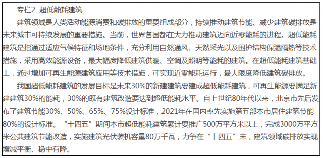 經(jīng)市政府同意,現(xiàn)將《北京市“十四五”時期應對氣候變化和節(jié)能規(guī)劃》印發(fā)給你們,請認真貫徹執(zhí)行。北京市“十四五”時期應對氣候變化和節(jié)能規(guī)劃“中國將力爭2030年前實現(xiàn)碳達峰,2060年前實現(xiàn)碳中和”,習近平總書記這一莊嚴宣誓彰顯了中國積極應對氣候變化、努力構(gòu)建人類命運共同體、走綠色低碳發(fā)展道路的堅定決心,為我國今后一個時期應對氣候變化和節(jié)能工作指明了方向。北京作為首都,要將碳達峰碳中和作為謀劃首都未來發(fā)展的重要目標和展示城市國際形象的重要契機,充分把握時代機遇,統(tǒng)籌處理好經(jīng)濟社會發(fā)展與節(jié)能降碳、積極應對氣候變化的內(nèi)在聯(lián)系,深入推進能源低碳革命,推動經(jīng)濟高質(zhì)量發(fā)展和生態(tài)環(huán)境高水平保護。按照國家和本市應對氣候變化和節(jié)能工作總體部署,為努力實現(xiàn)碳排放達峰后穩(wěn)中有降,在碳達峰碳中和實踐進程中探索出北京經(jīng)驗、貢獻北京力量,確保應對氣候變化和節(jié)能工作繼續(xù)走在全國前列,特制定本規(guī)劃。本規(guī)劃主要依據(jù)《北京城市總體規(guī)劃(2016年-2035年)》《北京市國民經(jīng)濟和社會發(fā)展第十四個五年規(guī)劃和二〇三五年遠景目標綱要》《北京市“十四五”時期生態(tài)環(huán)境保護規(guī)劃》《北京市“十四五”時期能源發(fā)展規(guī)劃》等文件編制。“十三五”時期,本市深入推進應對氣候變化與節(jié)能工作,率先建立能源消費和碳排放“雙控”機制,先行先試協(xié)同推進能源節(jié)約、溫室氣體排放控制和污染防治工作,綜合運用市場機制、標準引領、技術推廣、工程支撐、宣傳引導等多重手段,取得積極成效。規(guī)劃主要目標均超額完成,能源活動碳排放進入達峰平臺期,2020年能源消費總量控制在6762萬噸標準煤,單位地區(qū)生產(chǎn)總值能耗和二氧化碳排放分別累計下降23%以上和26%以上,能源利用效率和碳排放強度保持全國省級地區(qū)最優(yōu)水平。(一)綠色低碳的高質(zhì)量發(fā)展格局基本形成深入落實城市戰(zhàn)略定位,率先樹立減量發(fā)展理念,經(jīng)濟高質(zhì)量發(fā)展邁出堅實步伐。發(fā)布北京市新增產(chǎn)業(yè)禁止和限制目錄,并動態(tài)調(diào)整。嚴格開展固定資產(chǎn)投資項目節(jié)能審查,從源頭禁止建設高耗能、高排放項目。累計淘汰退出2154家不符合首都功能的一般制造業(yè)和污染企業(yè),工業(yè)能耗和碳排放量持續(xù)下降。積極開展綠色制造體系創(chuàng)建,創(chuàng)建國家級綠色工廠67家。金融、信息、科技等現(xiàn)代服務業(yè)優(yōu)勢更加凸顯,數(shù)字經(jīng)濟增加值占地區(qū)生產(chǎn)總值比重超四成,全市地區(qū)生產(chǎn)總值先后跨越兩個萬億臺階,人均地區(qū)生產(chǎn)總值和全員勞動生產(chǎn)率保持全國領先。大幅減少煤炭用量,平原地區(qū)基本實現(xiàn)無煤化,全市煤炭消費總量由2015年的1165萬噸削減到2020年的135萬噸,煤炭占能源消費總量的比重下降至1.5%。天然氣消費占比上升到37.2%,電力消費占比為27.8%,實現(xiàn)了能源結(jié)構(gòu)優(yōu)化轉(zhuǎn)型,化石能源內(nèi)部清潔化調(diào)整基本完成。因地制宜發(fā)展光伏、風電、地熱等可再生能源,積極增加外調(diào)綠電,制定實施強有力的光伏、風電支持政策,可再生能源占比達到10.4%。(三)重點領域節(jié)能降碳效果全面顯現(xiàn)積極推廣綠色建筑,累計建設綠色建筑1.28億平方米,示范推廣超低能耗建筑53萬平方米,穩(wěn)步推進裝配式建筑發(fā)展,新建裝配式建筑面積累計超過5400萬平方米。大力發(fā)展低碳交通,軌道交通運營里程達到726公里,新能源車輛達到40余萬輛。構(gòu)建市場導向的綠色技術創(chuàng)新體系,推廣200多項先進適用節(jié)能技術產(chǎn)品,實施新一輪節(jié)能減排促消費政策,持續(xù)提升節(jié)能家電市場占有率。完成新一輪百萬畝造林綠化任務和森林碳匯提升工程,森林覆蓋率達到44.6%,森林碳匯儲量增加約200萬噸。成立市委生態(tài)文明建設委員會,下設大氣污染綜合治理及應對氣候變化工作小組、推動形成綠色發(fā)展方式和生活方式工作小組,建立了各區(qū)和各部門相互協(xié)作的工作機制。將能源消費和碳排放總量與強度目標分解到各區(qū)、各行業(yè)主管部門,并按年度進行考核。強化標準的規(guī)范約束作用,累計在建筑、交通、工業(yè)等領域出臺近百項節(jié)能降碳地方標準。支持推廣合同能源管理模式,持續(xù)開展能源審計、清潔生產(chǎn)審核等工作。加強能源和碳排放統(tǒng)計核算能力建設,初步建立了市、區(qū)兩級碳排放核算體系。實施碳排放總量控制下的碳排放權(quán)交易制度,形成了以地方性法規(guī)和政府規(guī)章為基礎,多項標準、規(guī)定配套的碳交易政策法規(guī)體系。通過設定重點排放單位排放控制目標并逐年收緊,激發(fā)排放單位自主減排動力,進一步壓實了碳排放控制主體責任?!笆濉蹦┍臼性圏c碳市場已完成7個履約周期工作,累計交易量突破3500萬噸,累計成交額15億元,線上成交均價達60元/噸,位居全國各試點碳市場前列。納入碳市場企業(yè)碳排放總量5年來累計下降4%,降幅高于全市平均水平,碳排