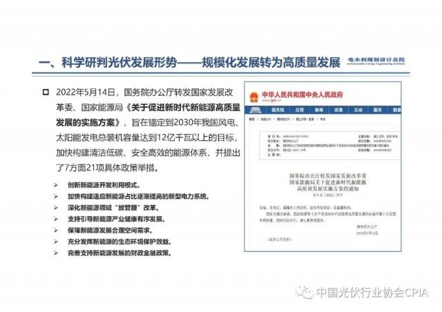 2022年7月21日,由中國(guó)光伏行業(yè)協(xié)會(huì)主辦的“光伏行業(yè)2022年上半年發(fā)展回顧與下半年形勢(shì)展望研討會(huì)”通過網(wǎng)絡(luò)直播形式順利召開。水電水利規(guī)劃設(shè)計(jì)總院新能源部副主任王躍峰作光伏發(fā)電特性和消納利用模式研究報(bào)告。王主任表示,站在當(dāng)前現(xiàn)在新能源發(fā)展的關(guān)鍵節(jié)點(diǎn),必須科學(xué)研判光伏的發(fā)展形勢(shì),正確認(rèn)識(shí)光伏的發(fā)電特性,才能更高效提升光伏發(fā)電利用水平。