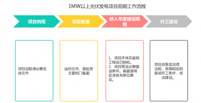 1.1MW以上光伏發(fā)電項目由省能源局發(fā)布規(guī)劃和年度建設規(guī)模,由屬地進行備案,流程圖如下: