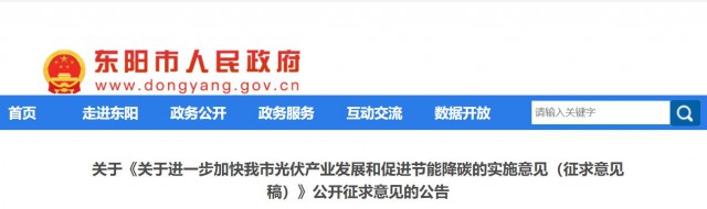 8月16日,東陽市人民政府發(fā)布《關(guān)于進(jìn)一步加快我市光伏產(chǎn)業(yè)發(fā)展和促進(jìn)節(jié)能降碳的實(shí)施意見(征求意見稿)》,意見稿指出,到2025年度,全市累計(jì)安裝光伏發(fā)電容量300兆瓦以上,其中2022年新增裝機(jī)40兆瓦以上。
