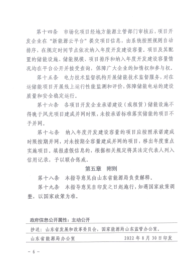 8月31日,山東省能源局印發(fā)《山東省風電、光伏發(fā)電項目并網保障指導意見(試行)》,文件提出,分類保障風光項目并網。按照項目類型和特點,將風光項目分為保障性項目、市場化項目和就地消納項目。保障性項目主要包括戶用光伏、工商業(yè)分布式光伏項目,省有關政策支持的整縣分布式光伏、海上風電、海上光伏項目,以及國家或省級明確要求予以保障的其他項目。市場化項目是指在自愿的前提下配置儲能獲得并網規(guī)模的陸上風電、陸上集中式光伏項目。