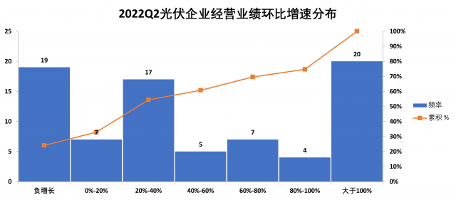 相比于營收的普漲態(tài)勢,光伏企業(yè)的經(jīng)營業(yè)績卻出現(xiàn)顯著分化。2022年上半年,79家光伏企業(yè)的歸母凈利潤總額達(dá)到650億元,平均增速為32%。其中,利潤負(fù)增長的企業(yè)占比高達(dá)32%,而業(yè)績翻倍增長的企業(yè)占比亦達(dá)到28%,呈現(xiàn)顯著的“兩極分化”態(tài)勢。不過,與2021年不同的是,產(chǎn)業(yè)鏈中游的諸多專業(yè)化廠商紛紛迎來“困境反轉(zhuǎn)”,而業(yè)績出現(xiàn)下滑的企業(yè)多為競爭力一般的中小市值企業(yè)。