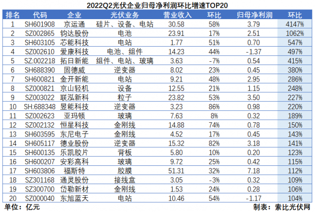具體到企業(yè)上,京運(yùn)通一季度受到新增硅片產(chǎn)能爬坡以及原有產(chǎn)能檢修的影響,毛利率僅為10.74%,受此影響歸母凈利潤也同比下降96%。不過,進(jìn)入二季度以后隨著新增產(chǎn)能逐步達(dá)產(chǎn)、原有產(chǎn)能檢修結(jié)束,盈利能力迅速釋放,毛利率環(huán)比提升13.94個百分點(diǎn)至24.72%,帶動歸母凈利潤環(huán)比增長4147%。