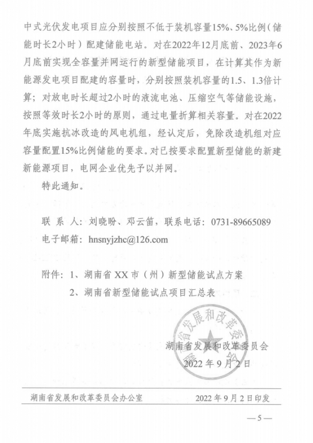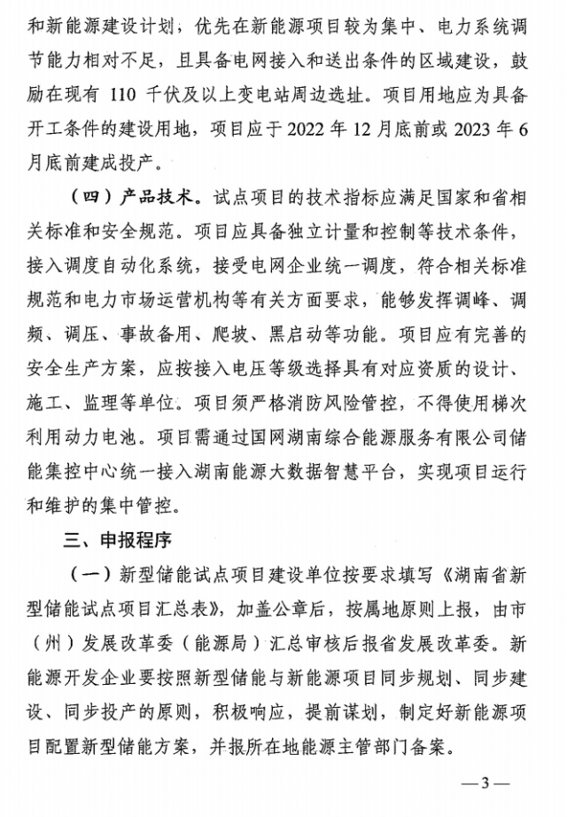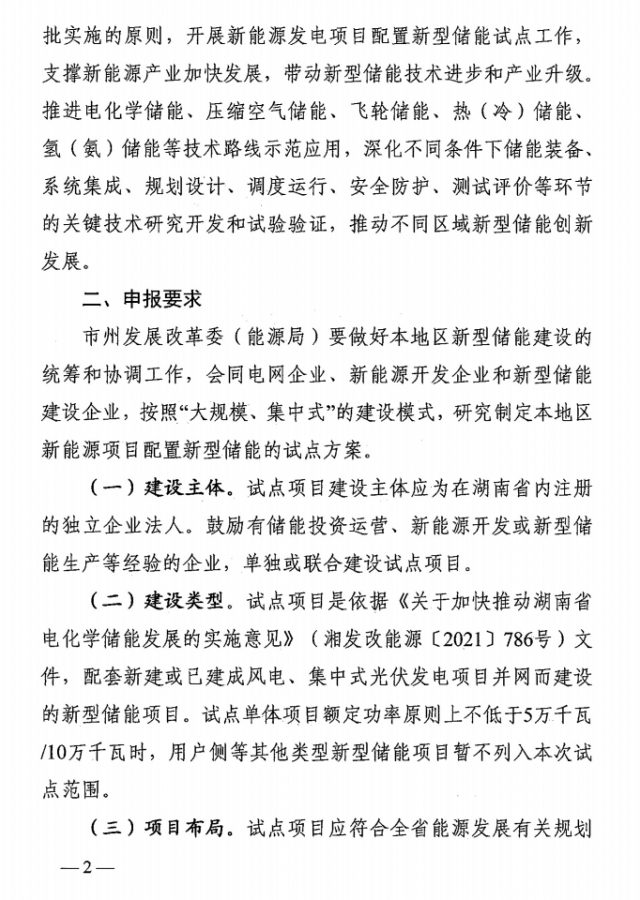 日前,湖南省發(fā)展和改革委員會發(fā)布《關(guān)于開展2022年新能源發(fā)電項目配置新型儲能試點工作的通知》。