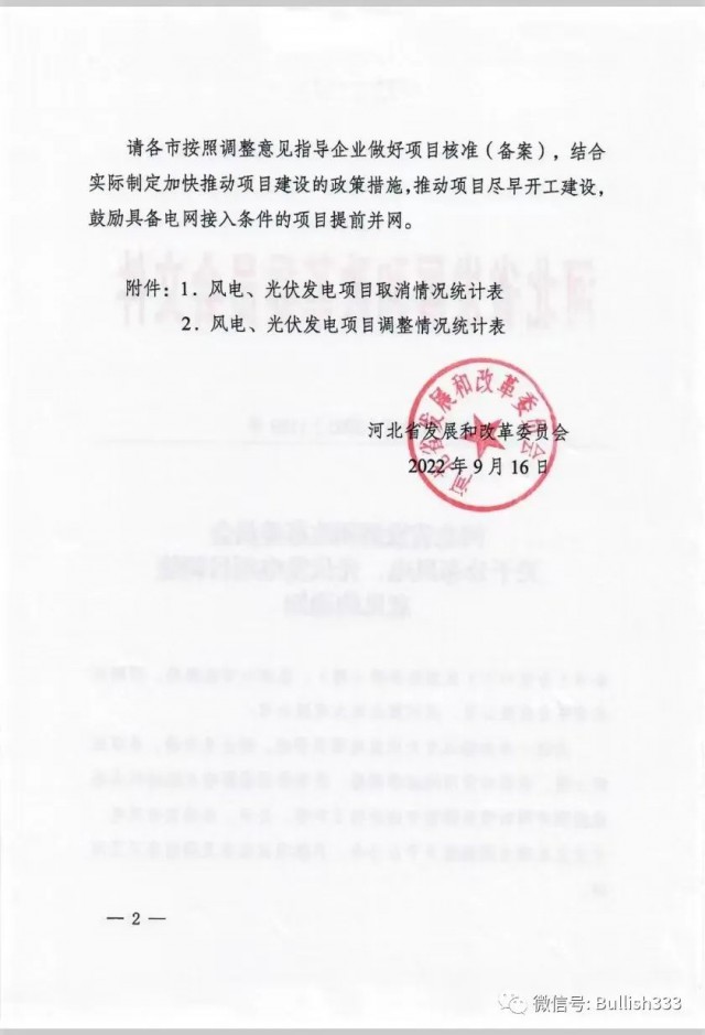 9月16日,河北發(fā)改委正式印發(fā)《關(guān)于公布風(fēng)電、光伏發(fā)電項(xiàng)目調(diào)整意見的通知》,對受用地政策調(diào)整、疫情等因素影響無法繼續(xù)實(shí)施或按期并網(wǎng)的項(xiàng)目進(jìn)行了調(diào)整。