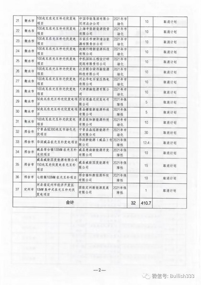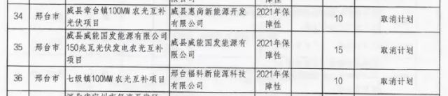 根據(jù)文件來看,相比此前發(fā)布的《風(fēng)電、光伏發(fā)電項(xiàng)目擬調(diào)整情況公示》來看,光伏新增取消三個2021年光伏保障性項(xiàng)目指標(biāo),規(guī)??傆?jì)為350MW,風(fēng)電則未發(fā)生變化。需要注意的是,三個光伏項(xiàng)目均為農(nóng)光互補(bǔ)類項(xiàng)目,其業(yè)主分別為惠尚新能源開發(fā)、威縣威能國發(fā)能源以及中國電建。