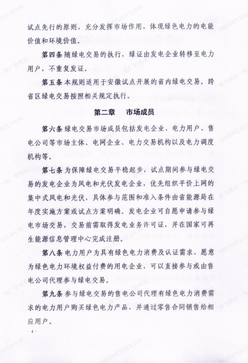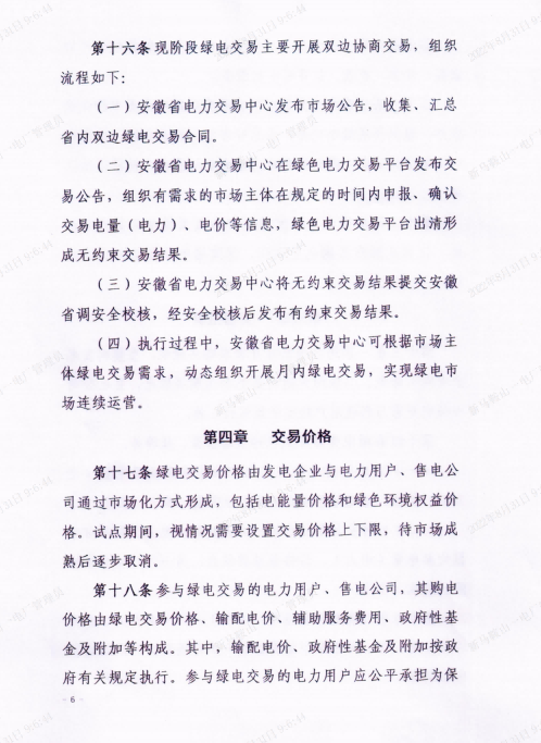 近日,華東能監(jiān)局、安徽省能源局發(fā)布《安徽省綠色電力交易試點規(guī)則》。參與綠電交易的電力用戶、售電公司,其購電價格 由綠電交易價格、輸配電價、輔助服務(wù)費用、政府性基金及附加等構(gòu)成。其中,輸配電價、政府性基金及附加按政府有關(guān)規(guī)定執(zhí)行。參與綠電交易的電力用戶應(yīng)公平承擔為保障居民、農(nóng)業(yè)等優(yōu)購用戶電價穩(wěn)定產(chǎn)生的新增損益分攤費用。