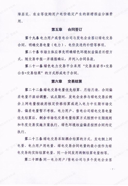 電能量交易價格按照電力中長期交易價格執(zhí)行,即按照“基準價格+上下浮動”形成,上下浮動范圍不超過 20%;綠色環(huán)境權(quán)益價格不設(shè)上限。