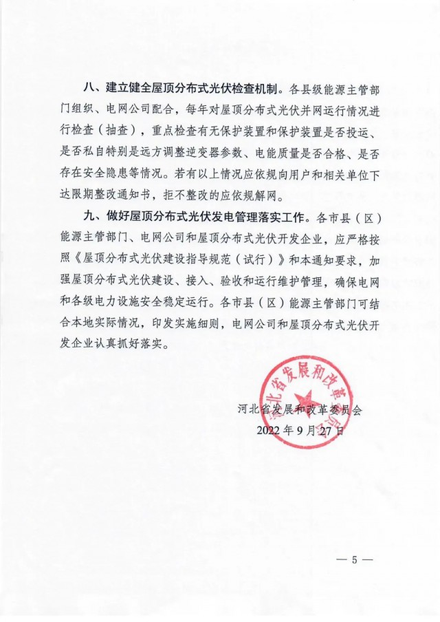 9月27日,河北省發(fā)改委發(fā)布《關(guān)于加強(qiáng)屋頂分布式光伏發(fā)電管理有關(guān)事項(xiàng)的通知》,通知指出,部分地區(qū)存在標(biāo)準(zhǔn)規(guī)范執(zhí)行不嚴(yán)、配電變壓器超容量接入等問(wèn)題,給供電安全和電能質(zhì)量帶來(lái)一定影響。為進(jìn)一步促進(jìn)全省屋頂分布式光伏科學(xué)有序安全發(fā)展,通知提出: