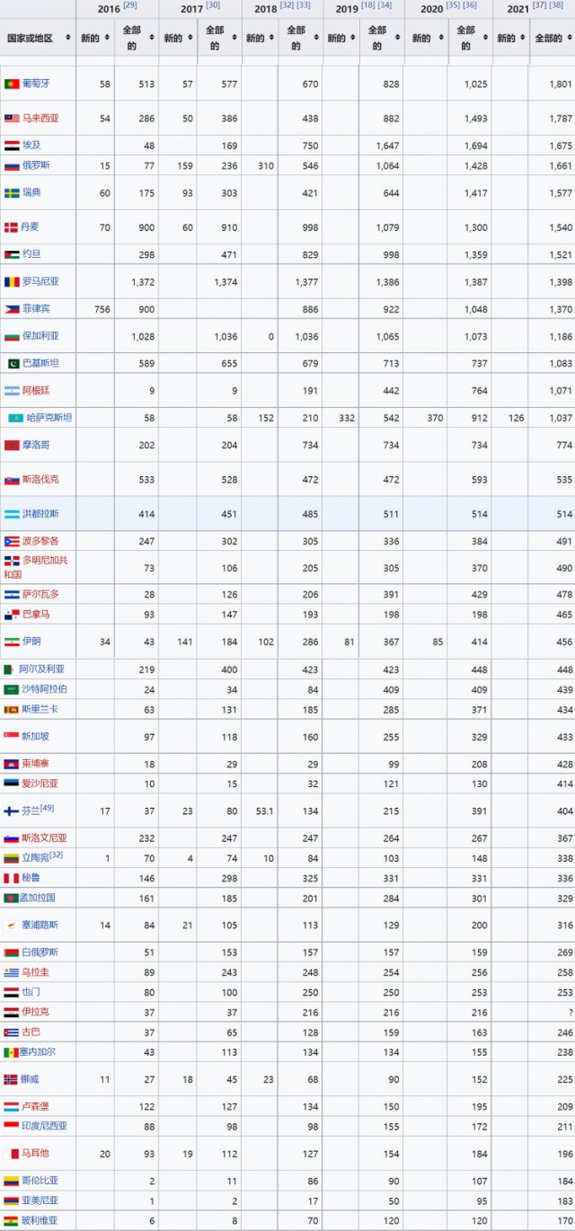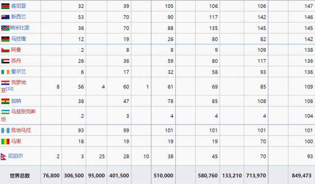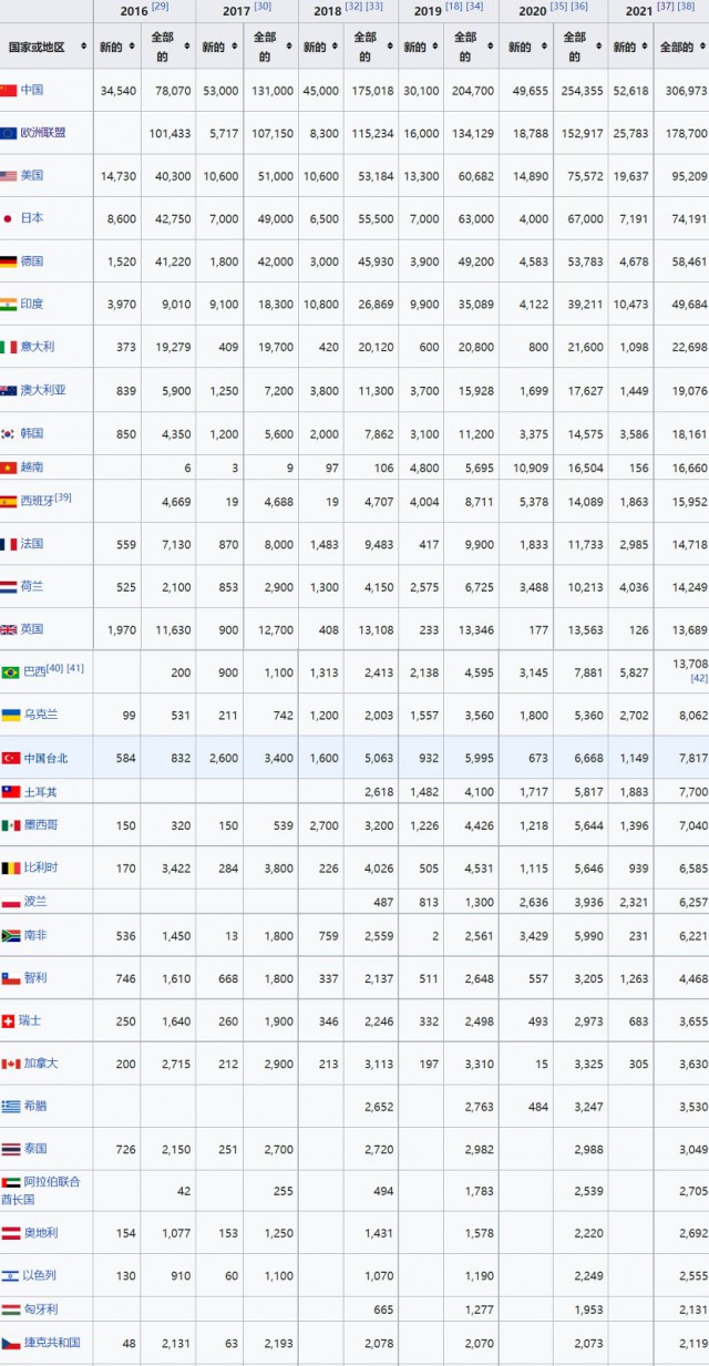 國際可再生能源署2021年度世界各國光伏裝機(jī)統(tǒng)計(單位:MW)