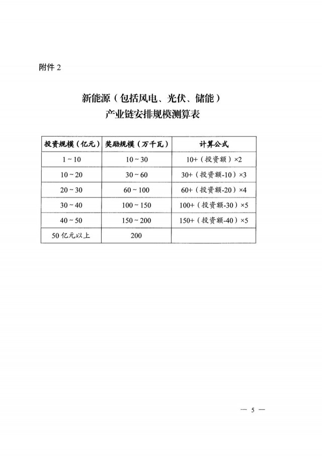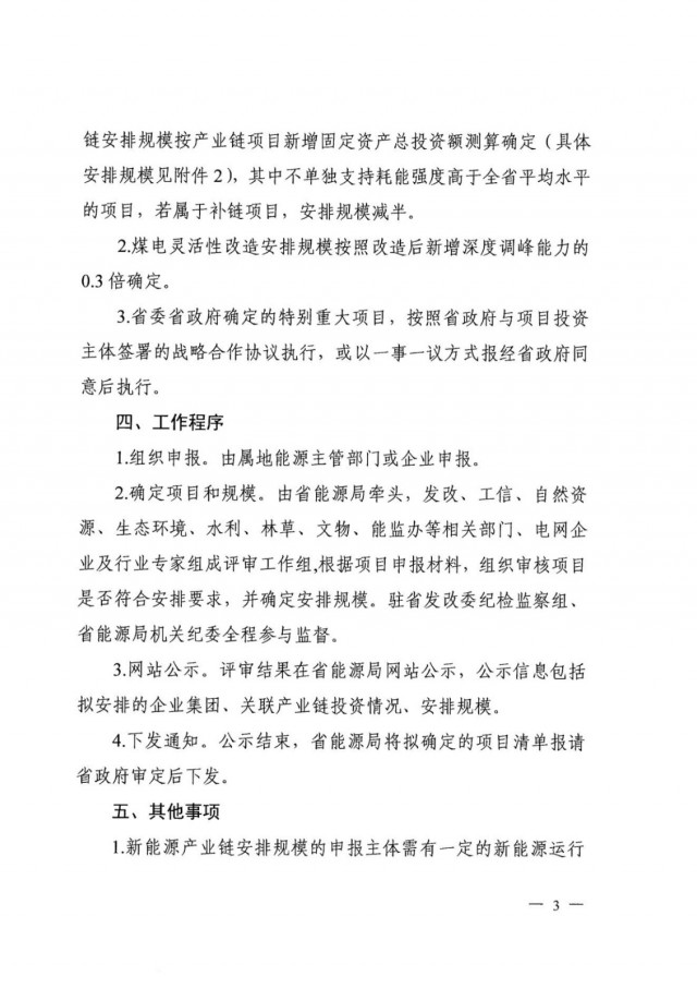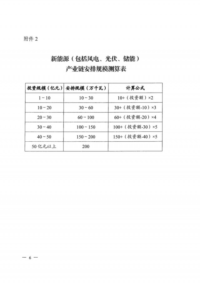 在項(xiàng)目規(guī)模分配規(guī)則方面則根據(jù)制造業(yè)項(xiàng)目的具體投資額按對(duì)應(yīng)公式進(jìn)行計(jì)算,例如1~10億元投資對(duì)應(yīng)100~300MW項(xiàng)目規(guī)模,30~40億元投資對(duì)應(yīng)1~1.5GW,50億元以上則統(tǒng)一為2GW項(xiàng)目規(guī)模。需要注意的是,不支持耗能強(qiáng)度高于全省平均水平的項(xiàng)目,若屬于補(bǔ)鏈項(xiàng)目則安排規(guī)模減半。