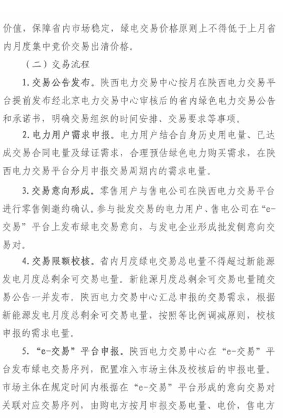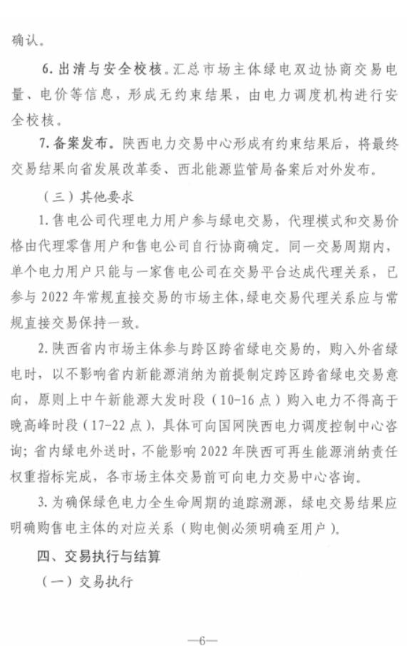 日前,陜西電力交易中心發(fā)布《陜西省2022年綠色電力交易實施方案》。方案中提到,參與交易的平價風電、光伏發(fā)電企業(yè)上網電量超出綠電交易合同結算電量之和外的正偏差部分由電網企業(yè)保障性收購,執(zhí)行政府定價;上網電量低于綠電交易合同電量之和的負偏差部分按照合同均價*0.1倍予以偏差考核結算,偏差考核結算電費納入陜西省電力中長期交易規(guī)則明確的不平衡資金,按期分攤返還。