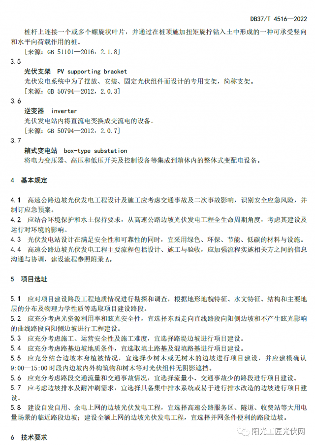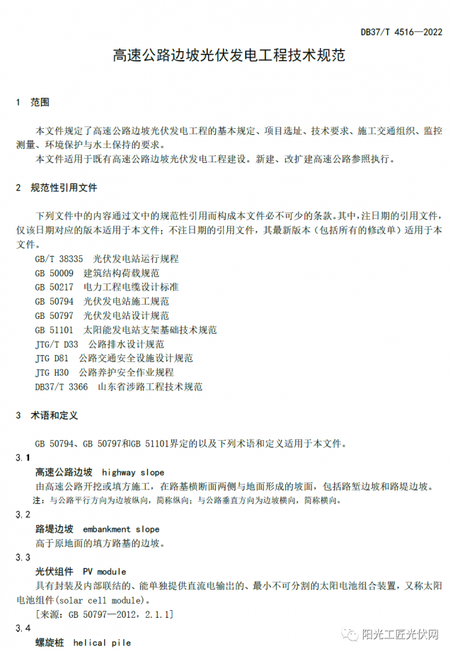 山東高速集團(tuán)黨委常委、副總經(jīng)理石振源回答說,本標(biāo)準(zhǔn)是在現(xiàn)行光伏發(fā)電工程建設(shè)技術(shù)標(biāo)準(zhǔn)體系下,根據(jù)高速公路特點(diǎn)制定的。標(biāo)準(zhǔn)規(guī)定了邊坡光伏發(fā)電工程的項(xiàng)目選址、施工交通組織、監(jiān)控測(cè)量、環(huán)境保護(hù)與水土保持等技術(shù)要求,內(nèi)容詳細(xì)、全面、完整,具有較強(qiáng)的專業(yè)性和操作性。