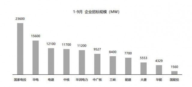 ?圖:據(jù)公開數(shù)據(jù)統(tǒng)計(jì),2022年1-9月企業(yè)招標(biāo)規(guī)模(MW)