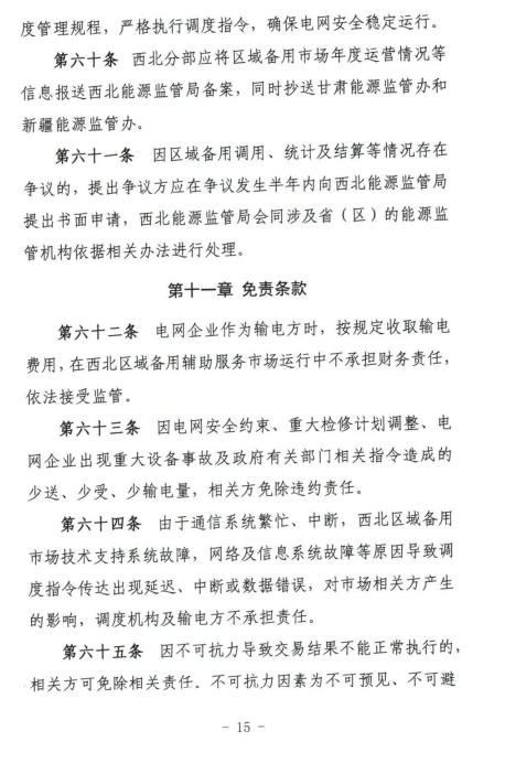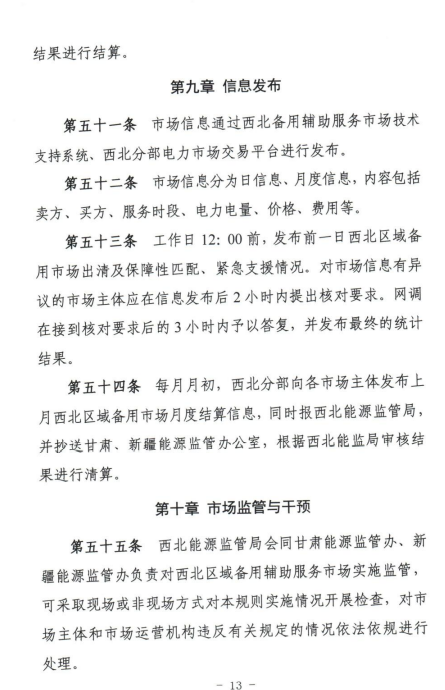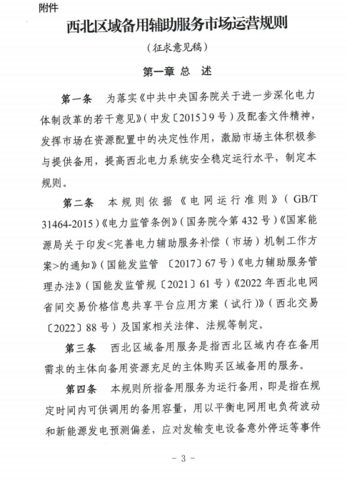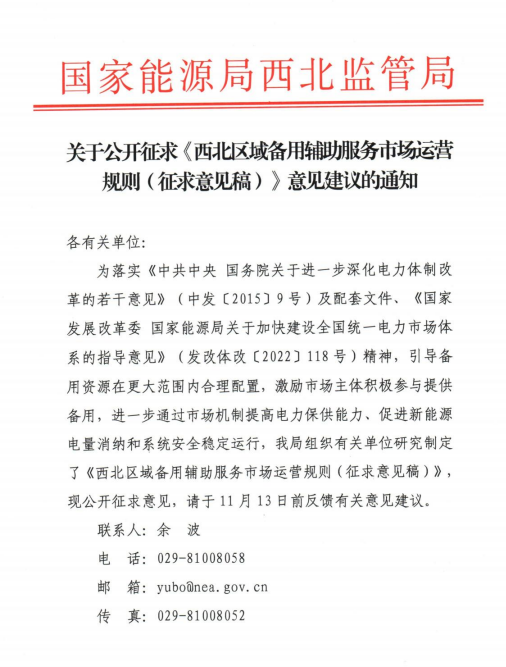10月17日,西北能監(jiān)局公開征求《西北區(qū)域備用輔助服務市場運營規(guī)則(征求意見稿)》意見建議的通知。