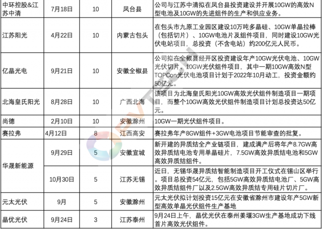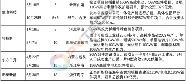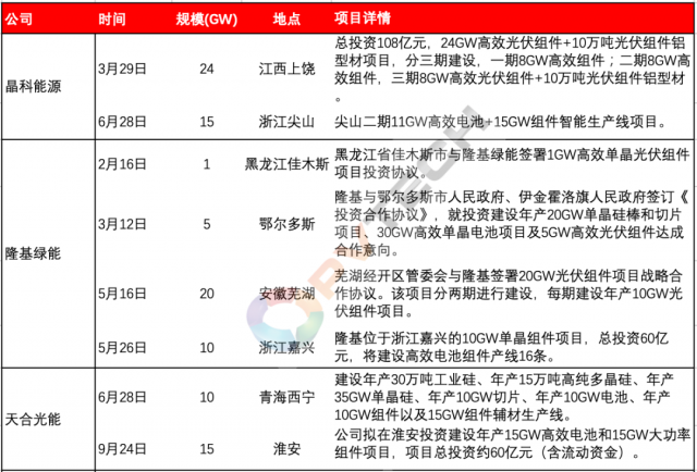 今年以來,以晶科能源、隆基綠能、天合光能、晶澳科技等為代表的行業(yè)第一梯隊主流組件大廠為鞏固各自市場地位、把握行業(yè)發(fā)展帶來的市場機遇,均在積極投資新建組件產能。