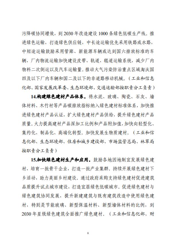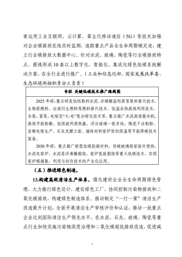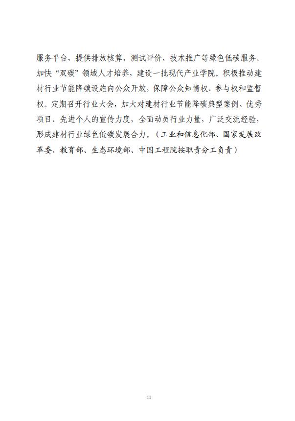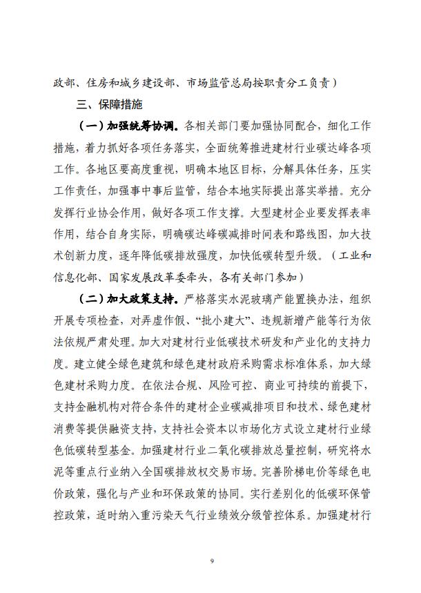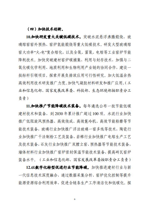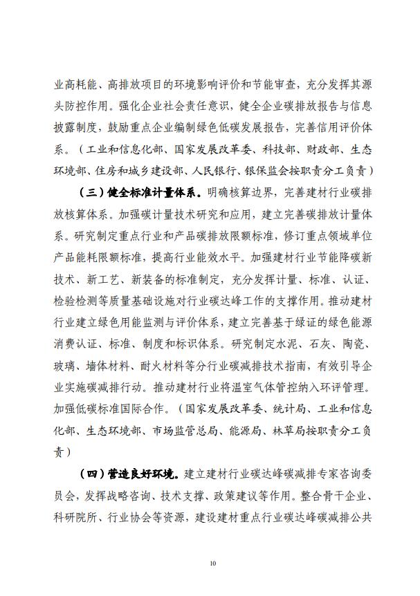 四部門關(guān)于印發(fā)建材行業(yè)碳達峰實施方案的通知