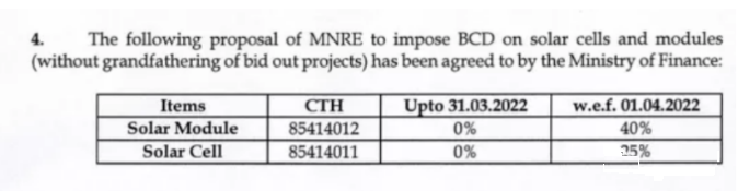 印度太陽能制造商協(xié)會(ISMA)請愿提出后,印度政府從2022年4月1日起對光伏電池和組件分別征收25%和40%的基本關稅,征收的關稅涵蓋了被調查產品的整個范圍,一定程度上緩解了印度本土光伏行業(yè)的價格壓力。