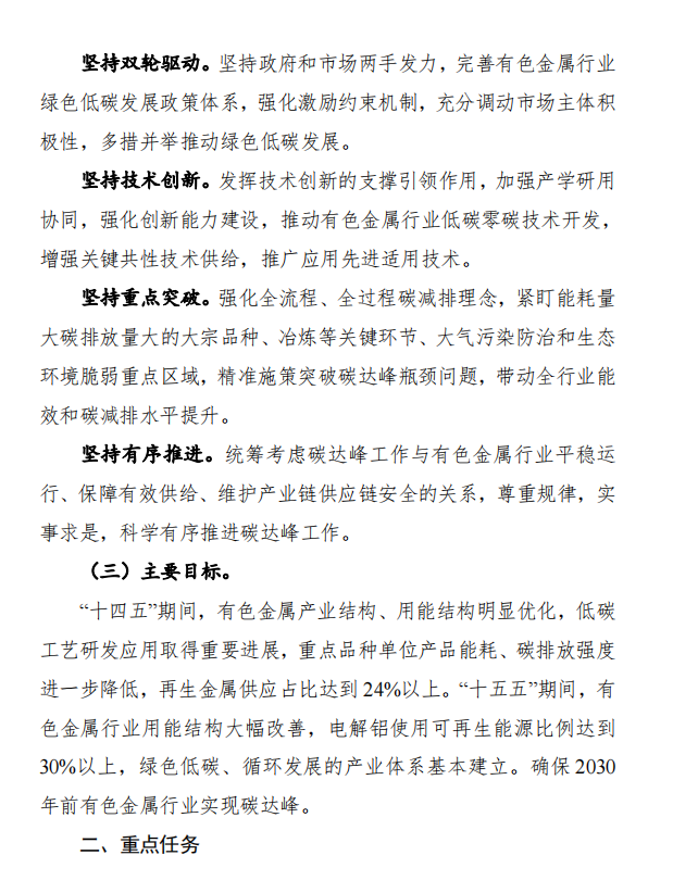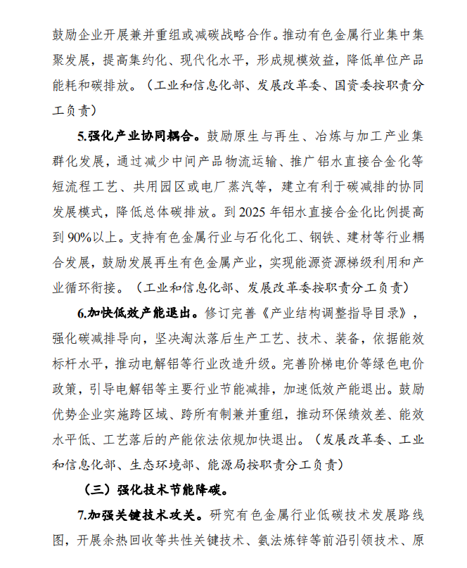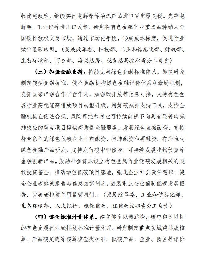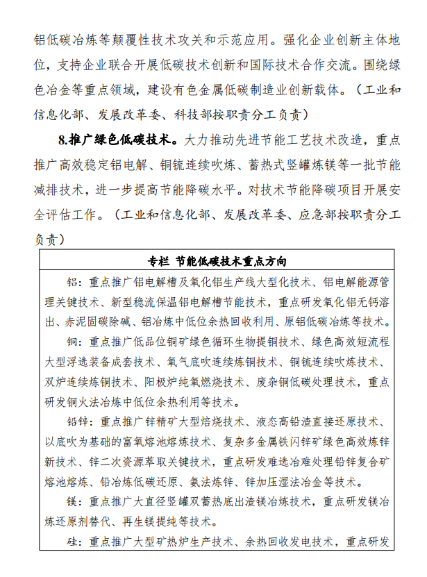 11月15日,工業(yè)和信息化部、國家發(fā)展和改革委員會和生態(tài)環(huán)境部發(fā)布《關(guān)于印發(fā)有色金屬行業(yè)碳達(dá)峰實(shí)施方案的通知》,(以下簡稱通知)通知指出,控制化石能源消費(fèi)。推進(jìn)有色金屬行業(yè)燃煤窯爐以電代煤,提升用能電氣化水平。在氣源有保障、氣價可承受的條件下有序推進(jìn)以氣代煤。推動落后自備燃煤機(jī)組淘汰關(guān)?;虿捎们鍧嵢剂咸娲?。嚴(yán)禁在國家政策允許的領(lǐng)域以外新(擴(kuò))建燃煤自備電廠,推動電解鋁行業(yè)從使用自備電向網(wǎng)電轉(zhuǎn)化。支持企業(yè)參與光伏、風(fēng)電等可再生能源和氫能、儲能系統(tǒng)開發(fā)建設(shè)。加強(qiáng)企業(yè)節(jié)能管理,嚴(yán)格落實(shí)國家強(qiáng)制性節(jié)能標(biāo)準(zhǔn),持續(xù)開展工業(yè)節(jié)能監(jiān)察,規(guī)范企業(yè)用能行為。