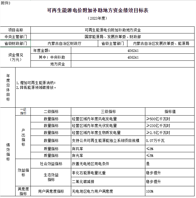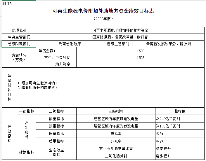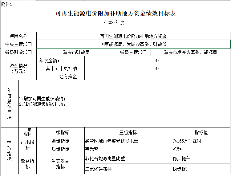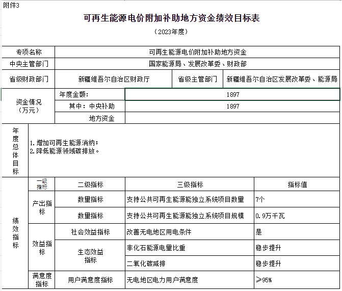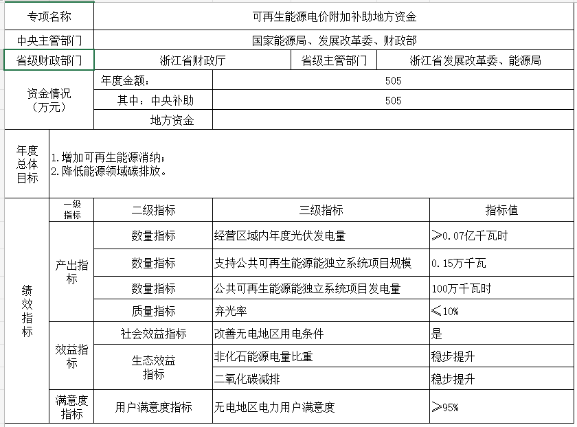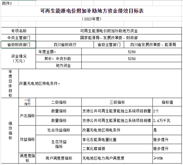 附件:1.可再生能源電價附加補(bǔ)助地方資金預(yù)算匯總表3.可再生能源電價附加補(bǔ)助地方資金績效目標(biāo)表
