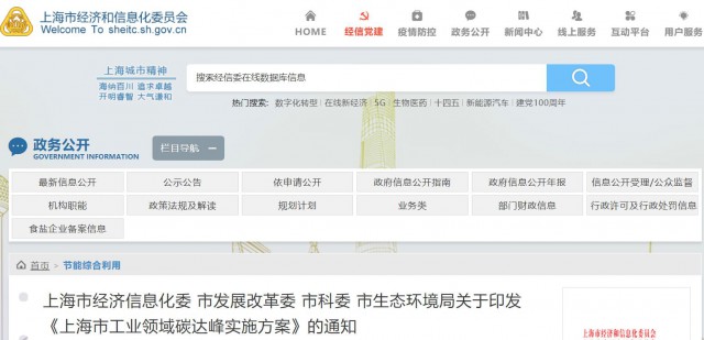 上海市工業(yè)領(lǐng)域碳達峰實施方案