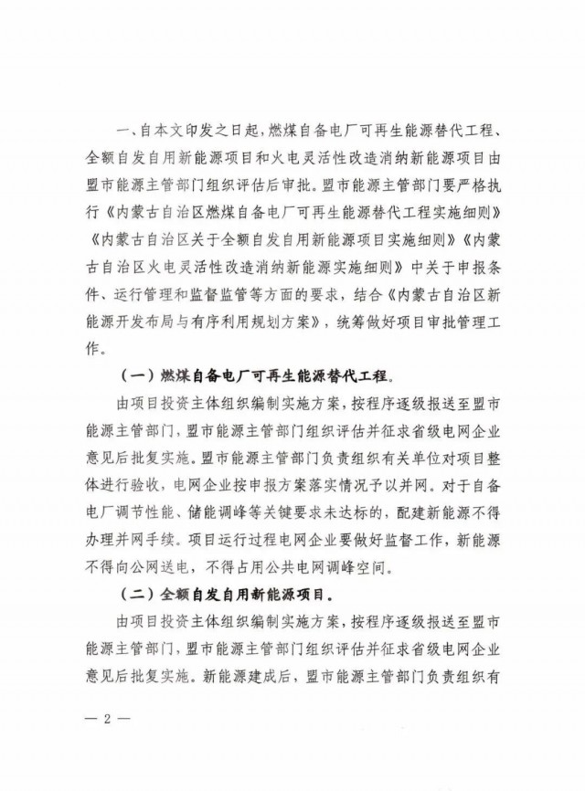 12月29日,內(nèi)蒙古自治區(qū)能源局發(fā)布關(guān)于下放部分市場化并網(wǎng)新能源項目審批權(quán)限的通知,通知指出:自本文印發(fā)之日起,燃煤自備電廠可再生能源替代工程全額自發(fā)自用新能源項目和火電靈活性改造消納新能源項目由盟市能源主管部門組織評估后審批。