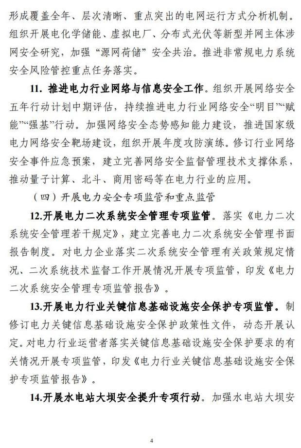 加強(qiáng)電網(wǎng)安全風(fēng)險(xiǎn)管控。完善電網(wǎng)運(yùn)行方式分析制度,形成覆蓋全年、層次清晰、重點(diǎn)突出的電網(wǎng)運(yùn)行方式分析機(jī)制。組織開(kāi)展電化學(xué)儲(chǔ)能、虛擬電廠、分布式光伏等新型并網(wǎng)主體涉網(wǎng)安全研究,加強(qiáng)“源網(wǎng)荷儲(chǔ)”安全共治。推進(jìn)非常規(guī)電力系統(tǒng)安全風(fēng)險(xiǎn)管控重點(diǎn)任務(wù)落實(shí)。
