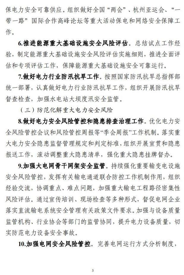 為貫徹落實(shí)黨的二十大精神,扎實(shí)做好2023年電力安全監(jiān)管工作,確保電力系統(tǒng)安全穩(wěn)定運(yùn)行和電力可靠供應(yīng),推動(dòng)全國(guó)電力安全生產(chǎn)形勢(shì)持續(xù)穩(wěn)定向好,我局制定了《2023年電力安全監(jiān)管重點(diǎn)任務(wù)》。現(xiàn)印發(fā)給你們,請(qǐng)結(jié)合本地區(qū)、本單位實(shí)際,認(rèn)真貫徹落實(shí)。