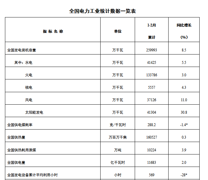 3月21日,國家能源局發(fā)布1-2月份全國電力工業(yè)統(tǒng)計數(shù)據(jù)。