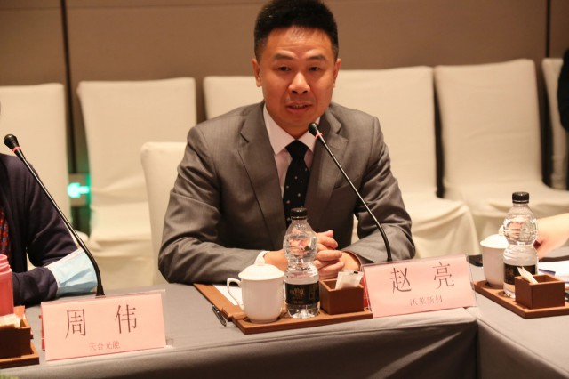 江蘇沃萊新材料有限公司董事長趙亮代表《光伏組件用玻纖增強復合材料邊框》標準的牽頭單位致辭。國家太陽能光伏產品質量檢驗檢測中心副主任朱曉崗作為聯合牽頭單位代表出席會議并講話。會議由中國電子技術標準化研究院工程師莊天奇及中國光伏行業(yè)協會標準會技術委員會組件工作組組長周偉主持。此項標準深受行業(yè)廣泛關注,會議吸引了包括中集集光、華能清能院、中廣核、天合光能、阿特斯、隆基、通威、晶澳、中來光電等產業(yè)鏈上下游70余家企業(yè)的近150名專家和代表參加。
