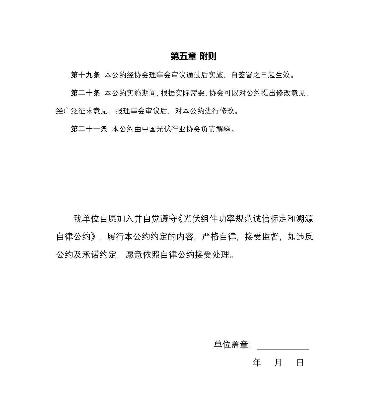 目前,中國光伏行業(yè)協(xié)會已組織40余家光伏企事業(yè)單位簽署了《自律公約》,涵蓋國內(nèi)骨干光伏組件企業(yè)、第三方檢測機構(gòu)、認(rèn)證計量機構(gòu)等多個環(huán)節(jié),后續(xù)還將組織更多單位參與簽約。
