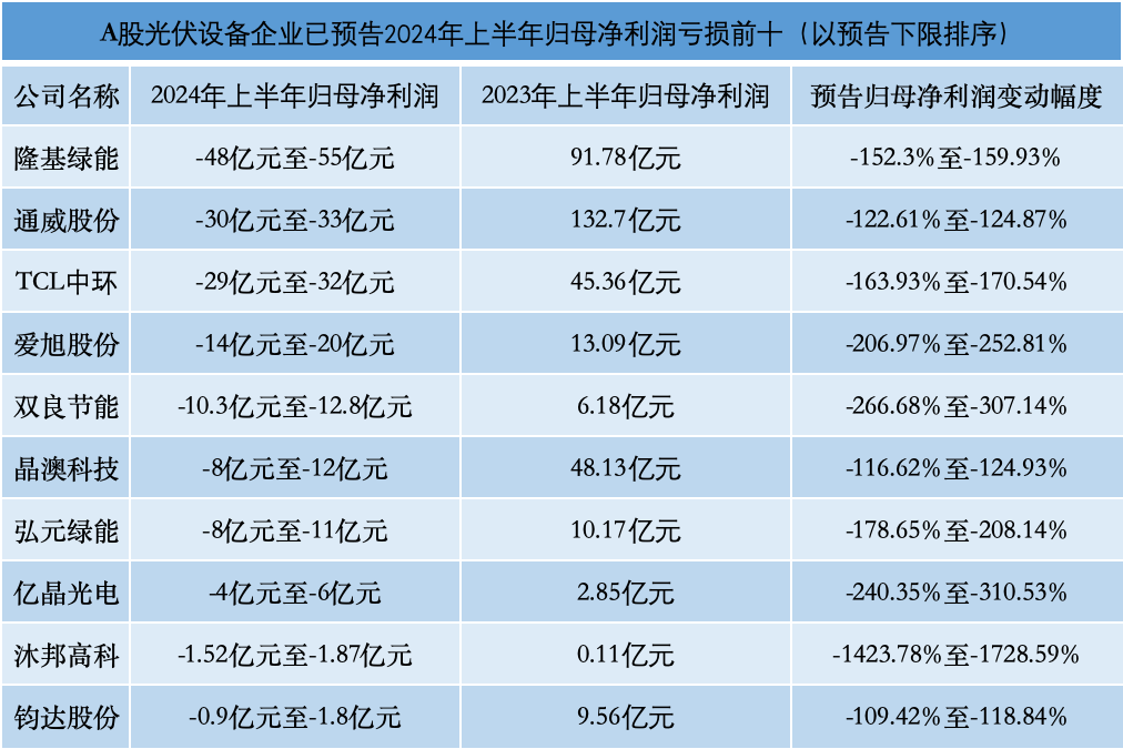 近日,部分光伏企業(yè)預(yù)披露了2024年上半年業(yè)績(jī)。