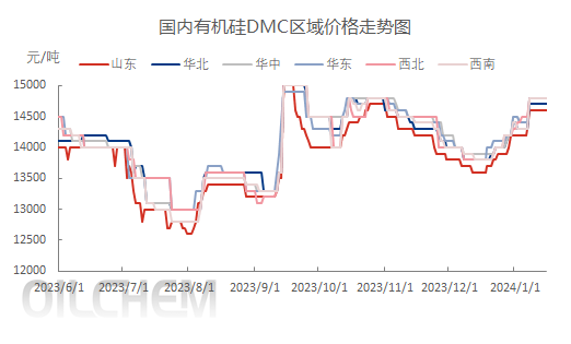 據(jù)悉,本輪有機硅DMC漲價始于合盛硅業(yè)(603260.SH)率先將DMC價格上調(diào)300元/噸,進(jìn)而引發(fā)主要廠商跟漲。“1月6號突然進(jìn)行了提價,上漲300元/噸,打破了該廠家價格上持久的安靜,其他廠商開始限量惜售,整個市場上現(xiàn)貨變得緊張,恐慌情緒下引發(fā)了下游集中補庫。從現(xiàn)在DMC廠商情況來看,在前期的調(diào)度下出貨沒有任何壓力。”隆眾資訊分析師劉昊介紹稱。