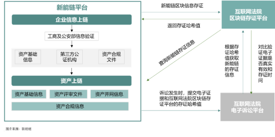 新能鏈充分發(fā)揮北京互聯(lián)網(wǎng)法院“天平鏈”核心節(jié)點(diǎn)的優(yōu)勢,通過將資產(chǎn)的基礎(chǔ)信息、質(zhì)量信息、收益信息等數(shù)據(jù)上鏈存證,使數(shù)據(jù)具備司法級(jí)效力,實(shí)現(xiàn)了電子數(shù)據(jù)全流程記錄、全鏈路可信、全節(jié)點(diǎn)見證。