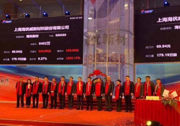 國(guó)內(nèi)光伏膠膜的領(lǐng)軍型企業(yè)---海優(yōu)新材在科創(chuàng)板正式上市。該公司今天開(kāi)盤(pán)價(jià)格為200元以上,截至發(fā)稿時(shí)報(bào)價(jià)為218元,漲幅為211.7%。這一漲幅在去年至今的所有新能源A股、科創(chuàng)板漲幅中非常之高。