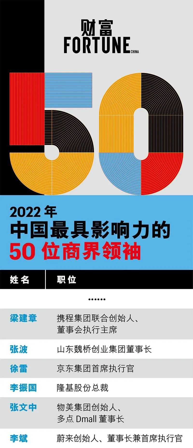 4月8日,《財富》雜志公布“2022年中國最具影響力的50位商界領(lǐng)袖”榜單,隆基股份創(chuàng)始人、總裁李振國入選。