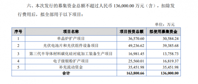 對于募資用途,連城數(shù)控表示,扣除發(fā)行費(fèi)用后,擬全部用于單晶爐擴(kuò)產(chǎn)項目、光伏電池片和光伏組件設(shè)備項目、第三代半導(dǎo)體材料碳化硅襯底加工裝備生產(chǎn)項目、電子級銀粉擴(kuò)產(chǎn)項目及補(bǔ)充流動資金。