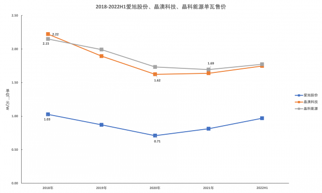 不過,長久以來,光伏組件價(jià)格持續(xù)下降,十年間降幅接近90%,而在此期間光伏企業(yè)的經(jīng)營業(yè)績卻保持穩(wěn)定增長。因此,在當(dāng)前光伏行業(yè)市場景氣度高企、出貨量連創(chuàng)新高的背景下,“量升”完全能夠?qū)_“價(jià)降”對于經(jīng)營業(yè)績的影響,尤其是漲價(jià)幅度相對有限的電池片和組件環(huán)節(jié)。鑒于此,索比光伏網(wǎng)選取了電池片環(huán)節(jié)的愛旭股份、組件環(huán)節(jié)的晶澳科技和晶科能源作為研究對象,以測算“價(jià)降量升”對于企業(yè)經(jīng)營業(yè)績的影響。