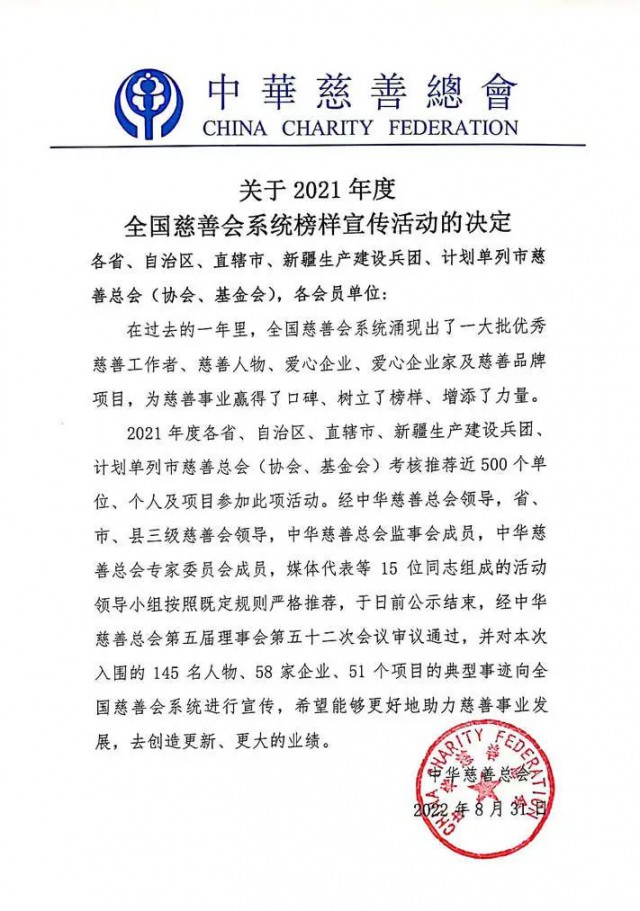近日,中華慈善總會公布2021年度全國慈善會系統(tǒng)榜樣宣傳活動評選結(jié)果。晶澳科技董事長靳保芳榮獲全國慈善會系統(tǒng)“愛心企業(yè)家”榮譽(yù)稱號。