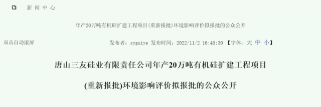 唐山三友硅業(yè)有限責(zé)任公司年產(chǎn)20萬噸有機(jī)硅擴(kuò)建工程項目(重新報批)