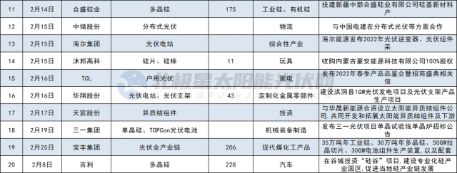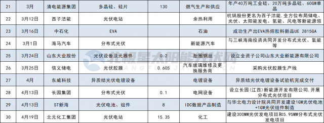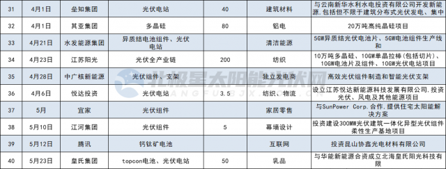 其他如多晶硅、硅片制造領(lǐng)域投資共7家,分別為合盛硅業(yè)、吉利、其亞集團(tuán)、清電能源、中啟控股、風(fēng)范股份、華民股份。光伏設(shè)備5家,分別為山東大業(yè)股份、東威科技、拓普集團(tuán)、奧海科技、金鴻順。光伏膠膜3家,分別為中石化、信義儲(chǔ)電、綠康生化;此外,江蘇陽(yáng)光、寶豐大手筆投資全產(chǎn)業(yè)鏈。