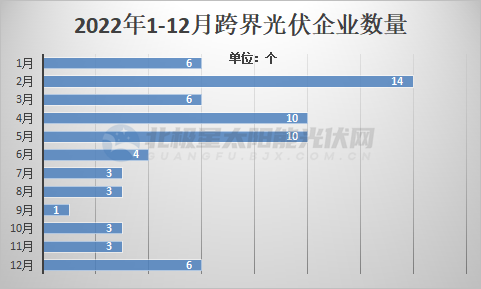 據(jù)不完全統(tǒng)計(jì),今年以來(lái),已有69家公司跨界到光伏行業(yè)。從密度上來(lái)看,幾乎每月都有企業(yè)宣布進(jìn)軍光伏領(lǐng)域,其中2月達(dá)到高峰,共有14家企業(yè)先后宣布進(jìn)入光伏;4月、5月先后有10家企業(yè)向光伏領(lǐng)域聚集;除了9月僅有1家以外,其他月份宣布跨界光伏的企業(yè)均在3家及以上。