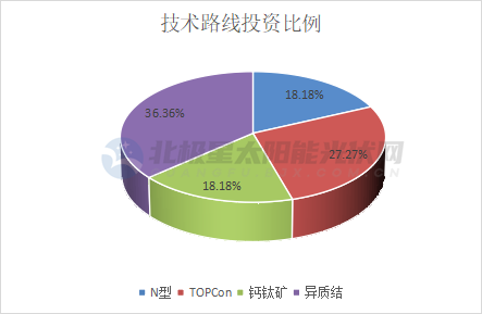 此外,電池組件環(huán)節(jié)也是跨界投資熱門(mén),吸引了包括正業(yè)科技、宏潤(rùn)建設(shè)、三五互聯(lián)、奧聯(lián)電子等18家企業(yè)投資。從投資路線來(lái)看,主要以N型為主,其中投資異質(zhì)結(jié)的企業(yè)占到跨界電池企業(yè)總比的36.36%,投資企業(yè)以天宸股份、水發(fā)能源集團(tuán)等為代表;TOPCon占27.27%,以三一集團(tuán)、皇氏集團(tuán)、棒杰股份、賽福天等為代表。其次,被稱為“未來(lái)技術(shù)”的鈣鈦礦也獲企業(yè)青睞,吸引如騰訊、奧聯(lián)電子等企業(yè)入局投資。