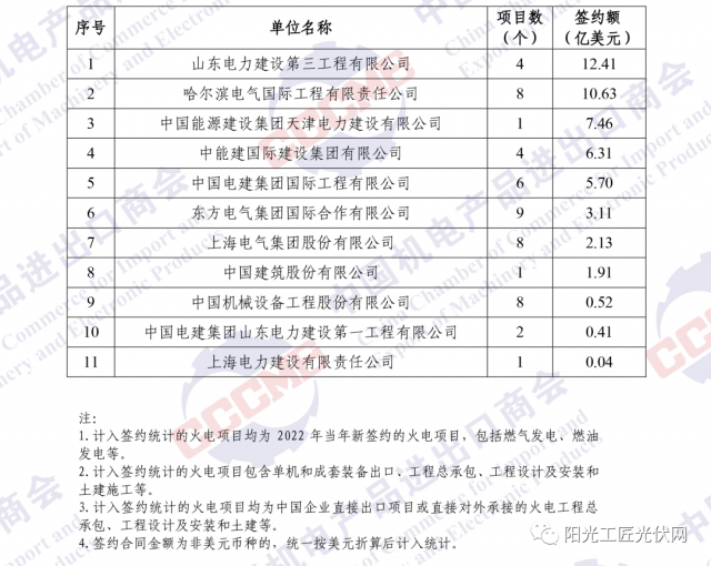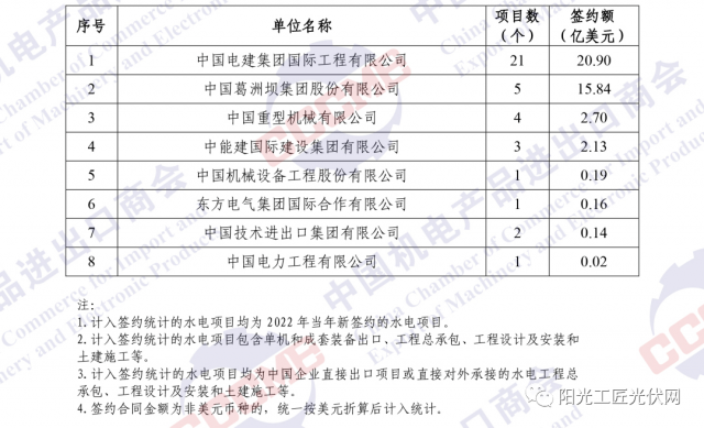2022年中國企業(yè)境外太陽能(光伏)項目簽約額排名