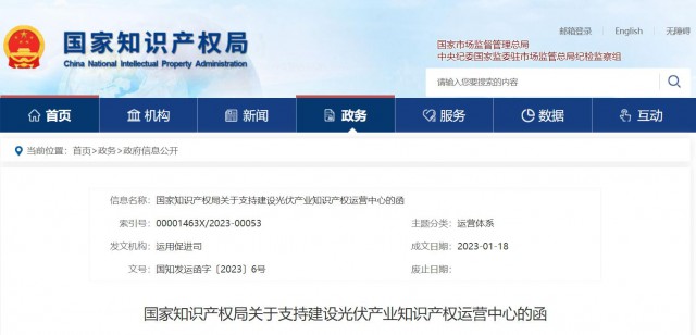 1月30日,北京市知識(shí)產(chǎn)權(quán)局發(fā)布關(guān)于支持建設(shè)光伏產(chǎn)業(yè)知識(shí)產(chǎn)權(quán)運(yùn)營中心的函,提出支持北京晶澳太陽能光伏科技有限公司建設(shè)光伏產(chǎn)業(yè)知識(shí)產(chǎn)權(quán)運(yùn)營中心。并表示,希望運(yùn)營中心緊密圍繞增強(qiáng)產(chǎn)業(yè)鏈供應(yīng)鏈穩(wěn)定性和競(jìng)爭(zhēng)力,融合相關(guān)知識(shí)產(chǎn)權(quán)服務(wù)資源,著力培育知識(shí)產(chǎn)權(quán)運(yùn)營服務(wù)能力,促進(jìn)知識(shí)產(chǎn)權(quán)高質(zhì)量創(chuàng)造、高水平布局和高效益運(yùn)用,助推產(chǎn)業(yè)高質(zhì)量發(fā)展。