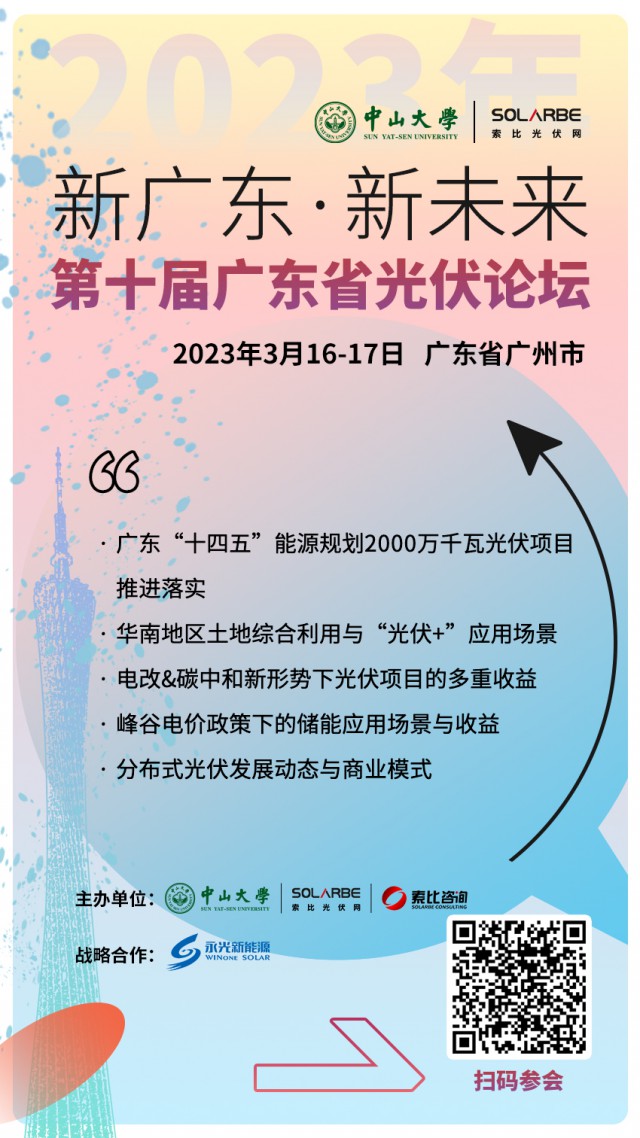 新廣東 新未來(lái)!第十屆廣東省光伏論壇3月16-17日聚首廣州,為時(shí)代籌謀!分布式光伏重心南遷之際與各位同仁一起搶占先機(jī)、贏得主動(dòng)!趕緊點(diǎn)擊了解詳情報(bào)名吧!