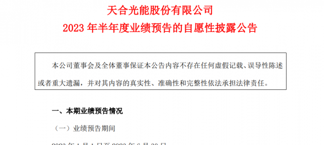 7月25日,天合光能發(fā)布2023年半年度業(yè)績預告,公司預計實現歸母凈利潤33.28-37.52億元,同比增長162.14%-195.61%;預計實現歸母扣非凈利潤35.03-39.27億元,同比增長204.40%-241.32%。